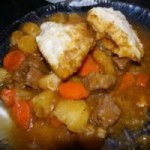 Mix flour, salt and baking soda. Stir in milk. Drop over hot stew. Cover and simmer for 15 minutes. Don’t peak. Approximately 6 dumplings.